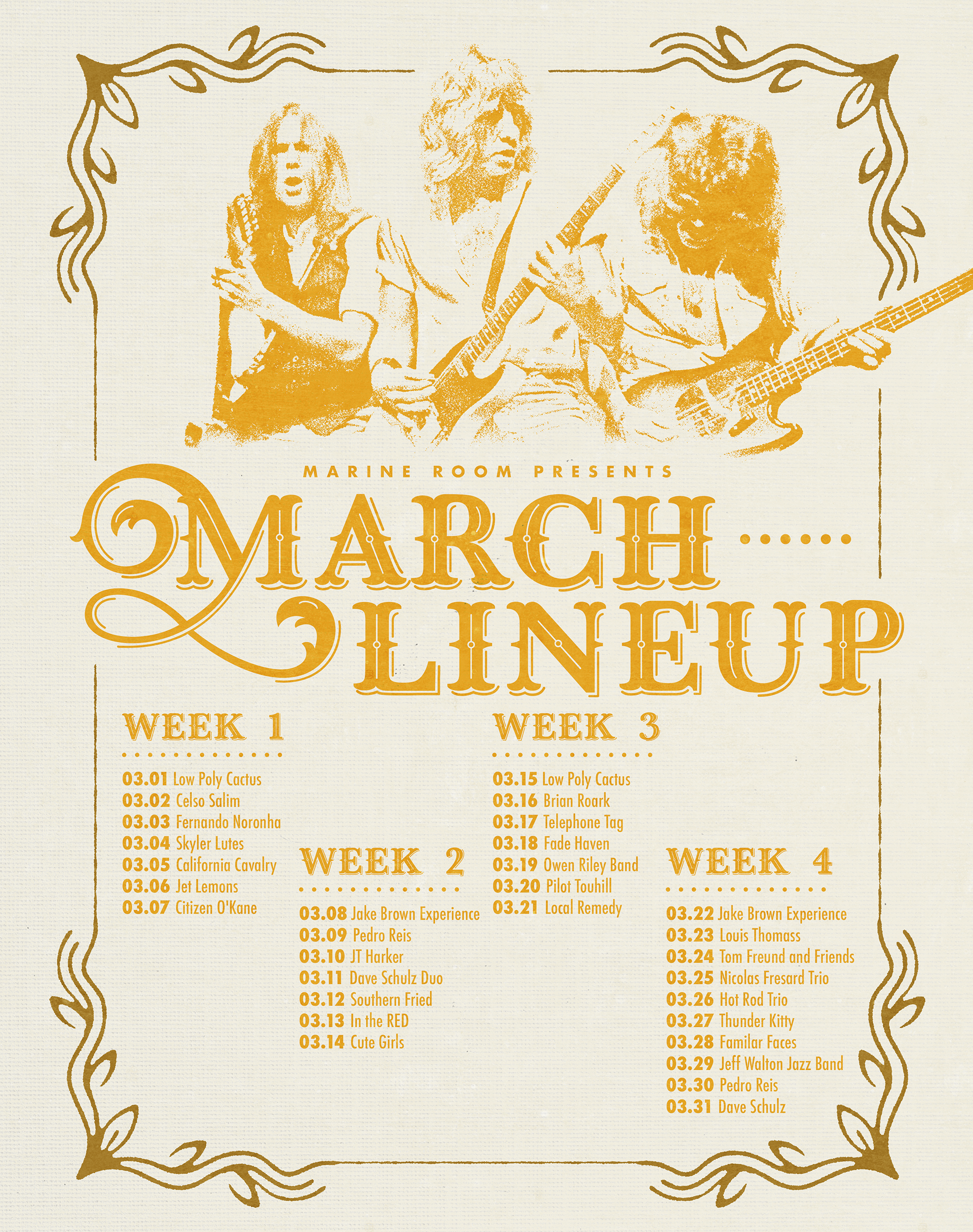 Marine Room March Lineup